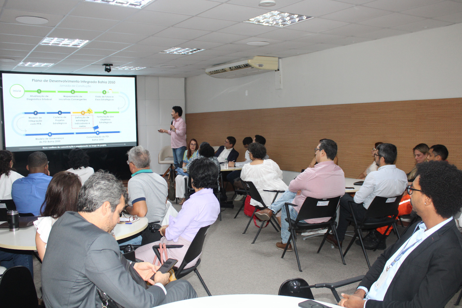 A Secretaria Estadual do Planejamento (Seplan) sediou, na quinta (30) e sexta-feira (31), oficinas de trabalho voltadas à construção coletiva do Plano de Desenvolvimento Integrado Bahia 2050 (PDI Bahia 2050). O evento reuniu representantes do poder público, do setor produtivo, de universidades e da sociedade civil, com o objetivo de aperfeiçoar as estratégias preliminares que irão orientar o desenvolvimento do estado nas próximas três décadas.