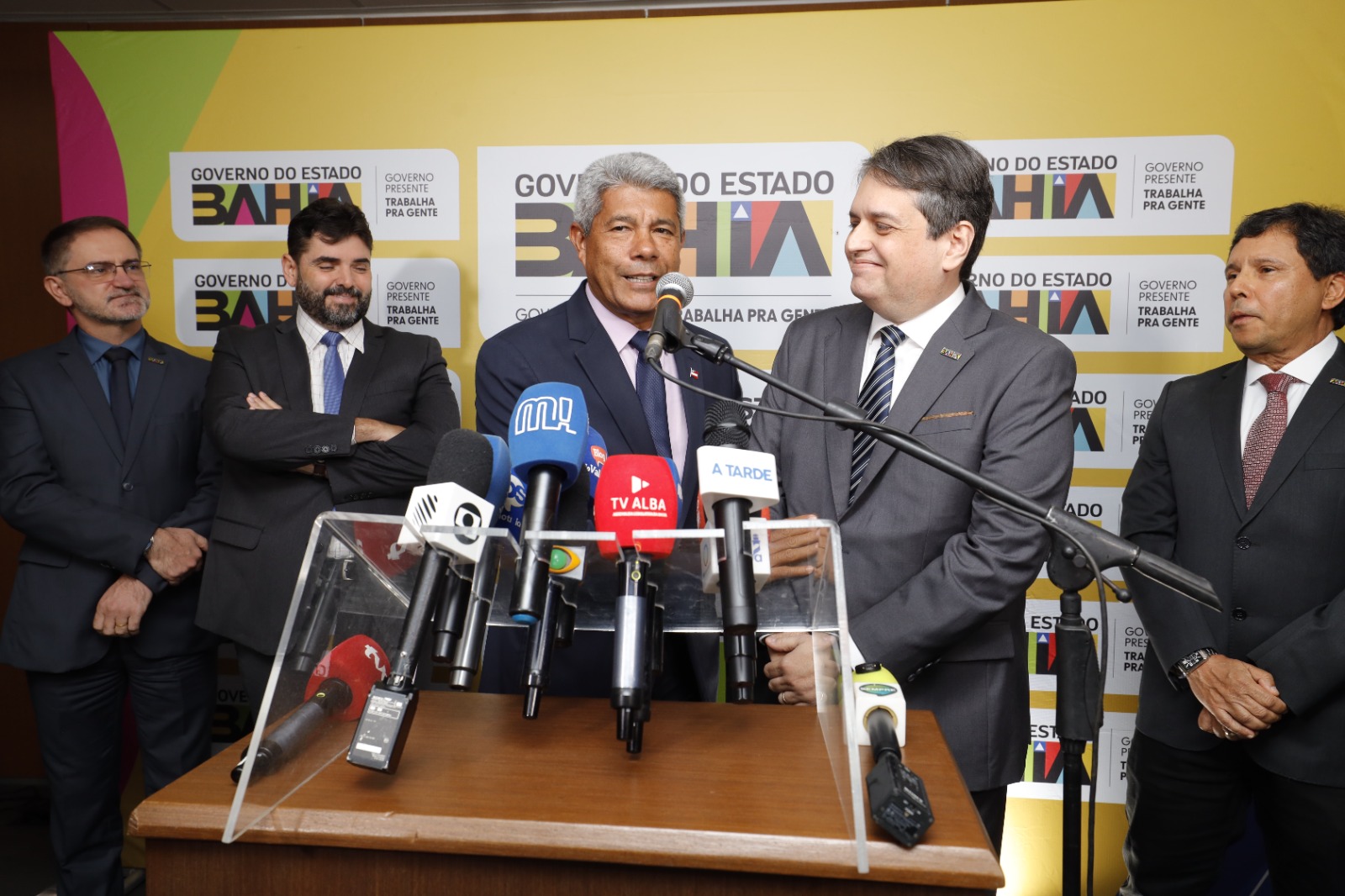 E governador Jerônimo Rodrigues anunciou, nesta segunda-feira (3), o nome de Mateus Dias, como novo titular responsável pela Secretaria Extraordinária do Sistema Viário Oeste Ponte Salvador-Itaparica durante coletiva de imprensa no gabinete oficial, em Salvador.
