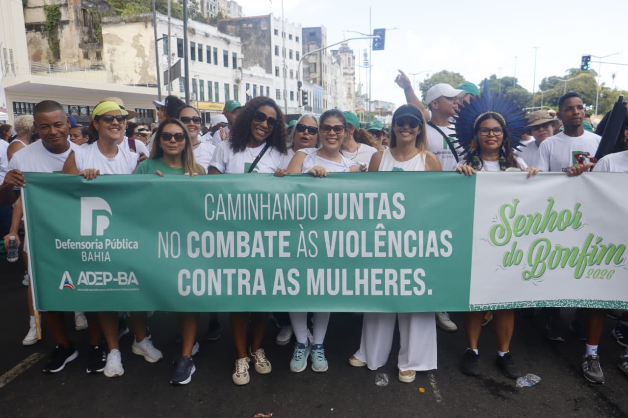 A Associação das Defensoras e Defensores Públicos da Bahia (ADEP-BA) marcou presença, nesta quinta-feira (15), no tradicional cortejo da Lavagem do Bonfim, reafirmando seu compromisso com a fé, a resistência e a representatividade da Defensoria Pública junto à sociedade baiana. A concentração ocorreu na sede da Defensoria Pública, no bairro do Canela, de onde defensoras e defensores seguiram juntos em caminhada até a Colina Sagrada.