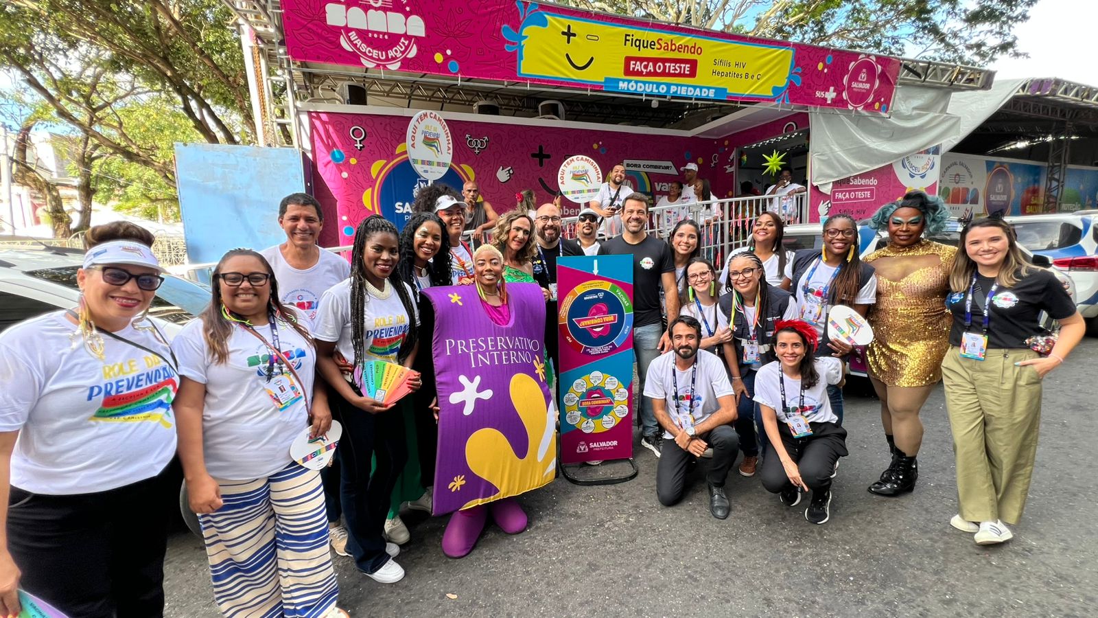 Um destaque especial vai para o Rolê da Prevenção, ação desenvolvida pela Secretaria Municipal da Saúde, realizada em parceria com a ONG Motirô-BA e o UNAIDS, com foco na ampliação do acesso as estratégias de prevenção combinada ao HIV e a outras Infecções Sexualmente Transmissíveis (IST) durante o Carnaval, que levou mobilizadores e mobilizadoras para o corpo a corpo com foliões e trabalhadores da festa, promovendo educação em saúde, diálogo direto sobre a prevenção combinada, incluindo o convite para a testagem nos módulos do Fique Sabendo. A presença desses mobilizadores no território do Carnaval tem sido fundamental para transformar informação em cuidado real, no ritmo da rua e no calor da festa.