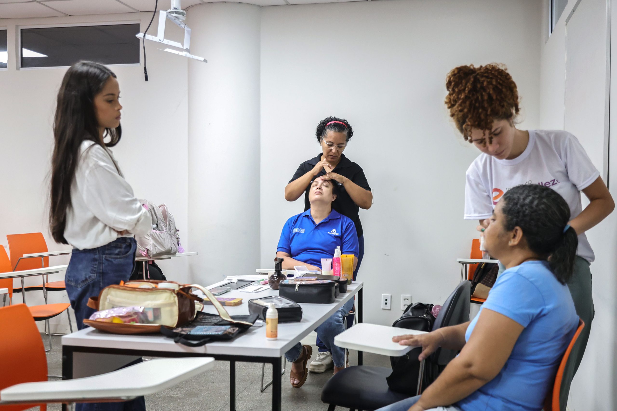Em continuidade à programação do Mês da Mulher, o Serviço Municipal de Intermediação de Mão de Obra (Simm) promoveu nesta quinta-feira (12) em sua sede, no bairro do Comércio, um momento de cuidado e autoestima para o público feminino com instrutoras de beleza. Foram realizados serviços de esmaltação, corte de cabelo e maquiagem, além de inscrições para oficinas e cursos do Senac.