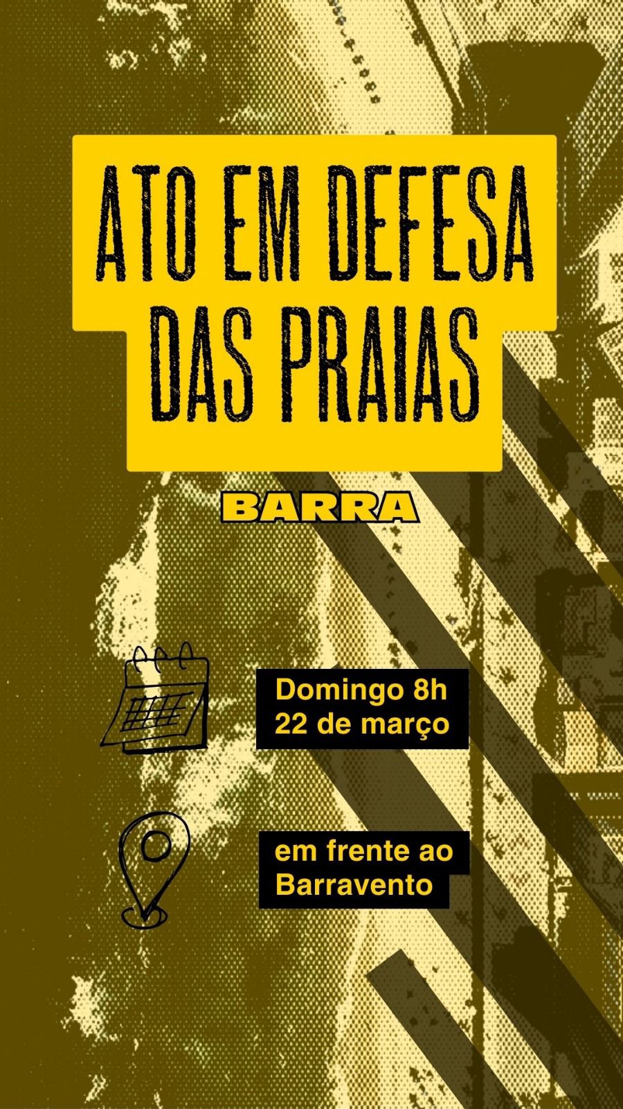 O ato convida a população a participar levando cartazes, cangas e mensagens em defesa da cidade. A proposta é ocupar simbolicamente a praia e reafirmar que o acesso ao sol e à orla é um direito coletivo.