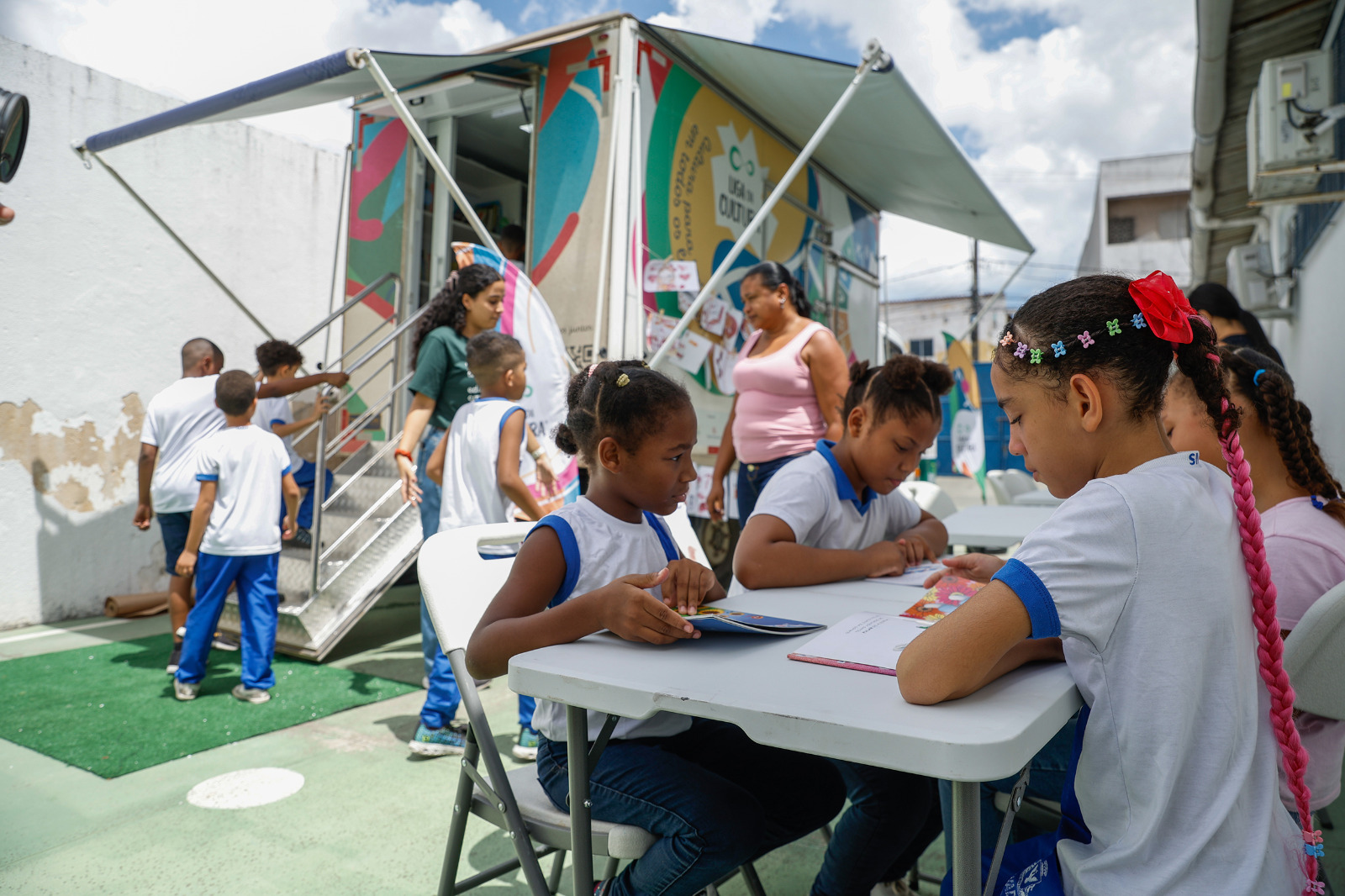 A iniciativa ainda passará por mais duas escolas da capital até abril: a Escola Municipal Profa. Hilda Fortuna de Castro, em Castelo Branco, de 30 de março a 2 de abril, e a Escola Municipal Dr. Roberto Correia, em Pau da Lima, de 6 a 10 de abril. Na semana passada, o projeto desembarcou na Escola Municipal Dona Isabel Brandão Vilela, no bairro de Dom Avelar, que atende 245 estudantes do Ensino Fundamental I. Na unidade, os alunos participaram de uma programação com atividades lúdicas, oficinas e acesso a um acervo literário diversificado.
